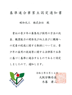 昭和化工は今後も若者の採用と育成に積極的に取り組んでまいります。