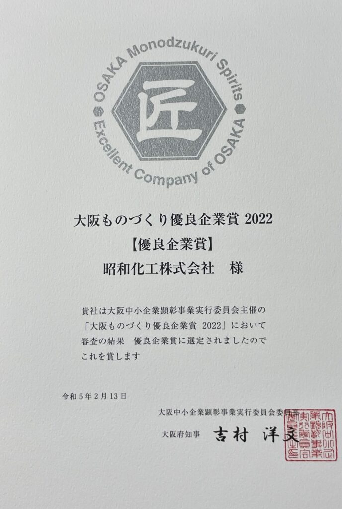 「大阪ものづくり優良企業賞2022」を受賞しました