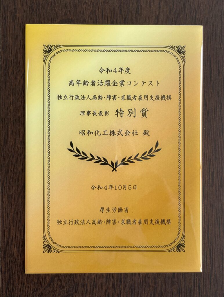 「令和4年度高年齢者活躍企業コンテスト」において、
